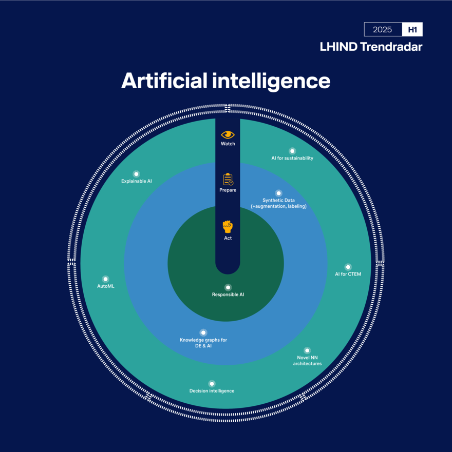 Der LHIND-Trendradar zu Data Analytics und Künstliche Intelligenz erscheint halbjährlich. Der Trendradar H2/2025 erscheint im November 2025.