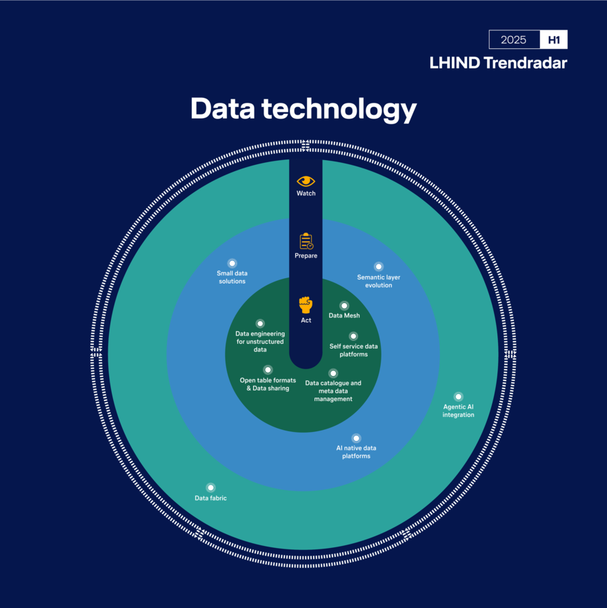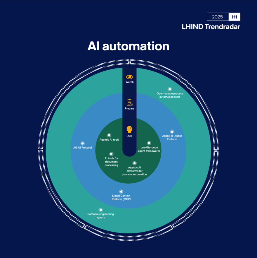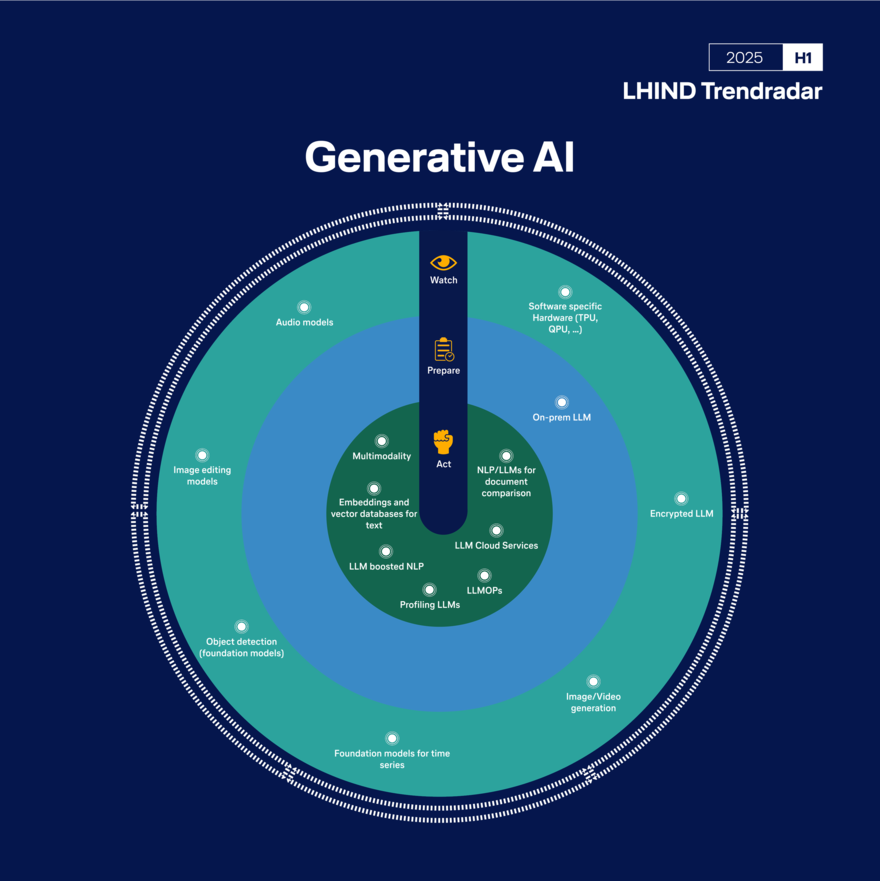 Die Bewertung basiert auf Analysen von LHIND-Expert:innen, ergänzt durch Marktforschung, Kundenfeedback und Berichte führender Analysten. Trends werden regelmäßig gesichtet, priorisiert und in drei Handlungskategorien eingeordnet: „Act“, „Prepare“ und „Watch“.